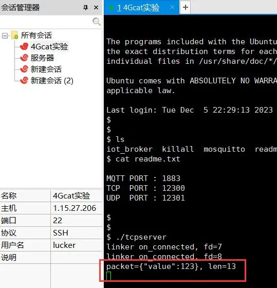 在 Xshell 里【ctrl+c】可以退出MQTT程序