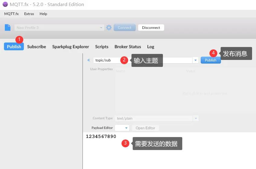 - 使用MQTT.fx发布主题(数据上报)