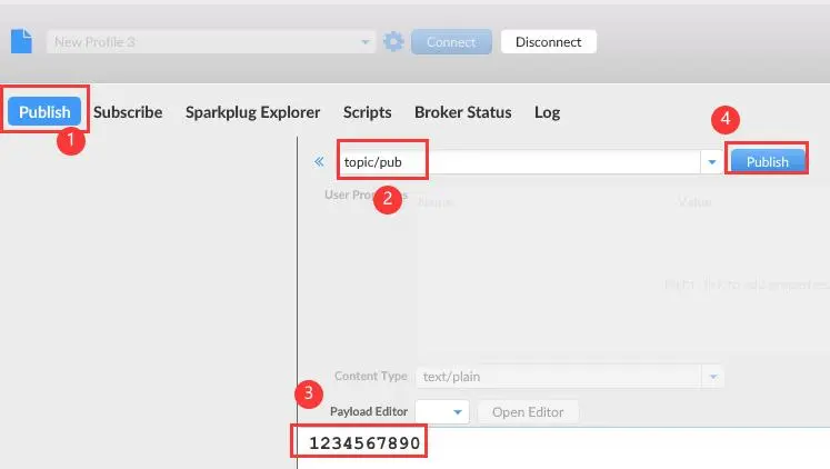 也可以向主题发布消息。选择Publish,然后输入以下信息: