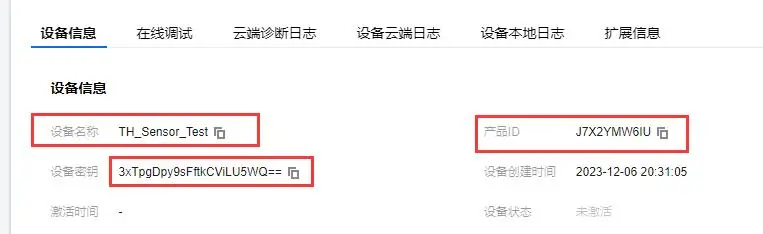 单击刚创建好的设备名称,把其中的产品ID复制出来,在产品ID后面加上 “.iotcloud.tencentdevices.com” 便得到MQTT服务器地址,例如我的是: